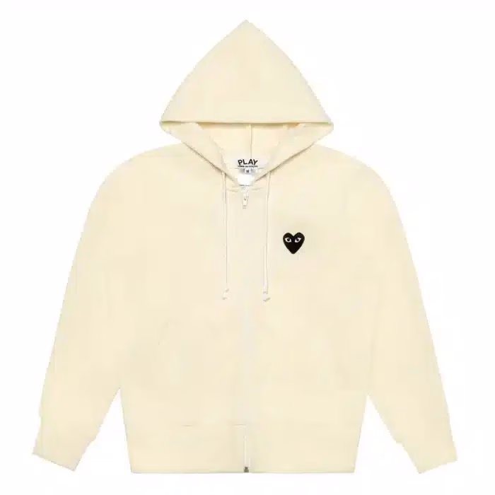 Be the first to review “CDG Zip Up Cream Hoodie With Black Heart” Cancel reply